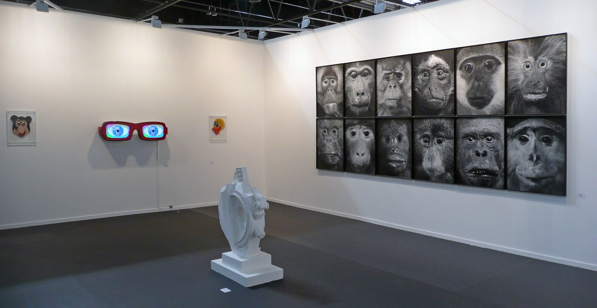 XL Gallery stand with works by Anna Jermolaewa, Electroboutique, Sergei Shekhovtsov and Oleg Kulik