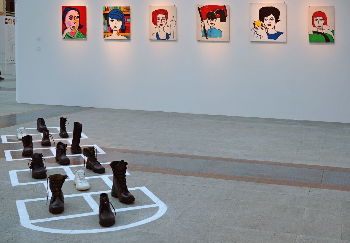 Фрагмент экспозиции с работами Александры Галкиной и Сергея Сапожникова