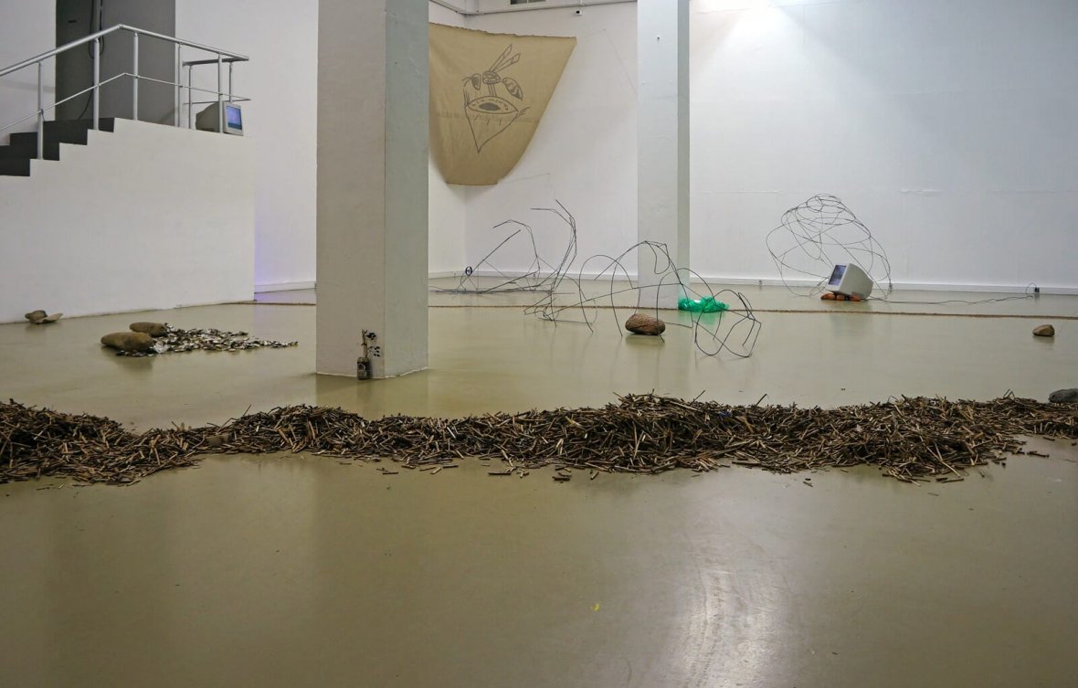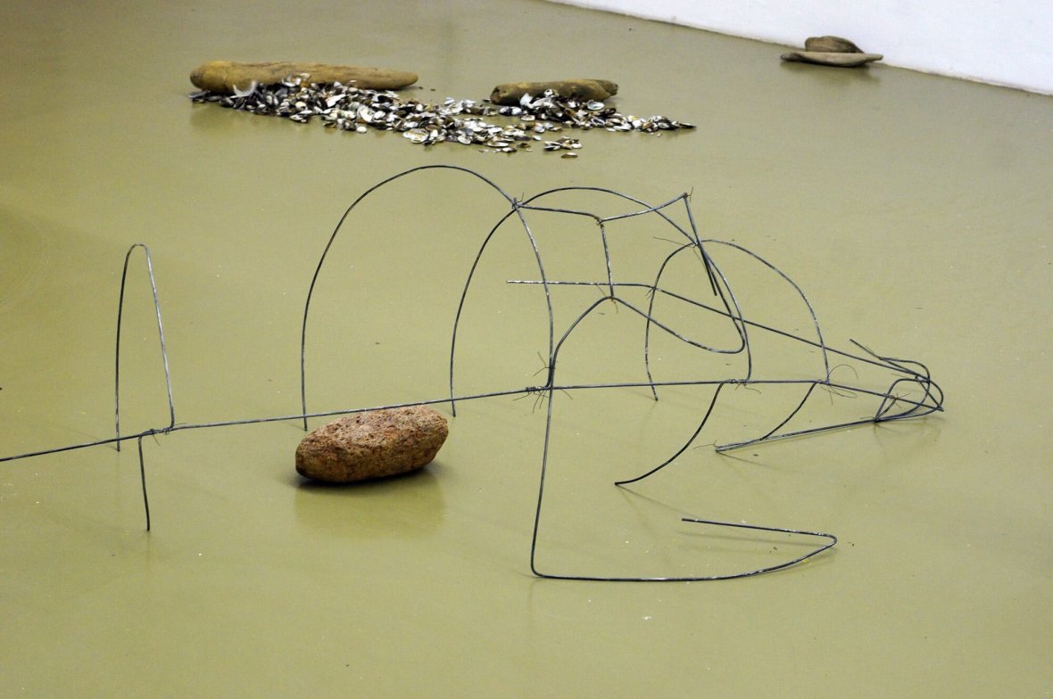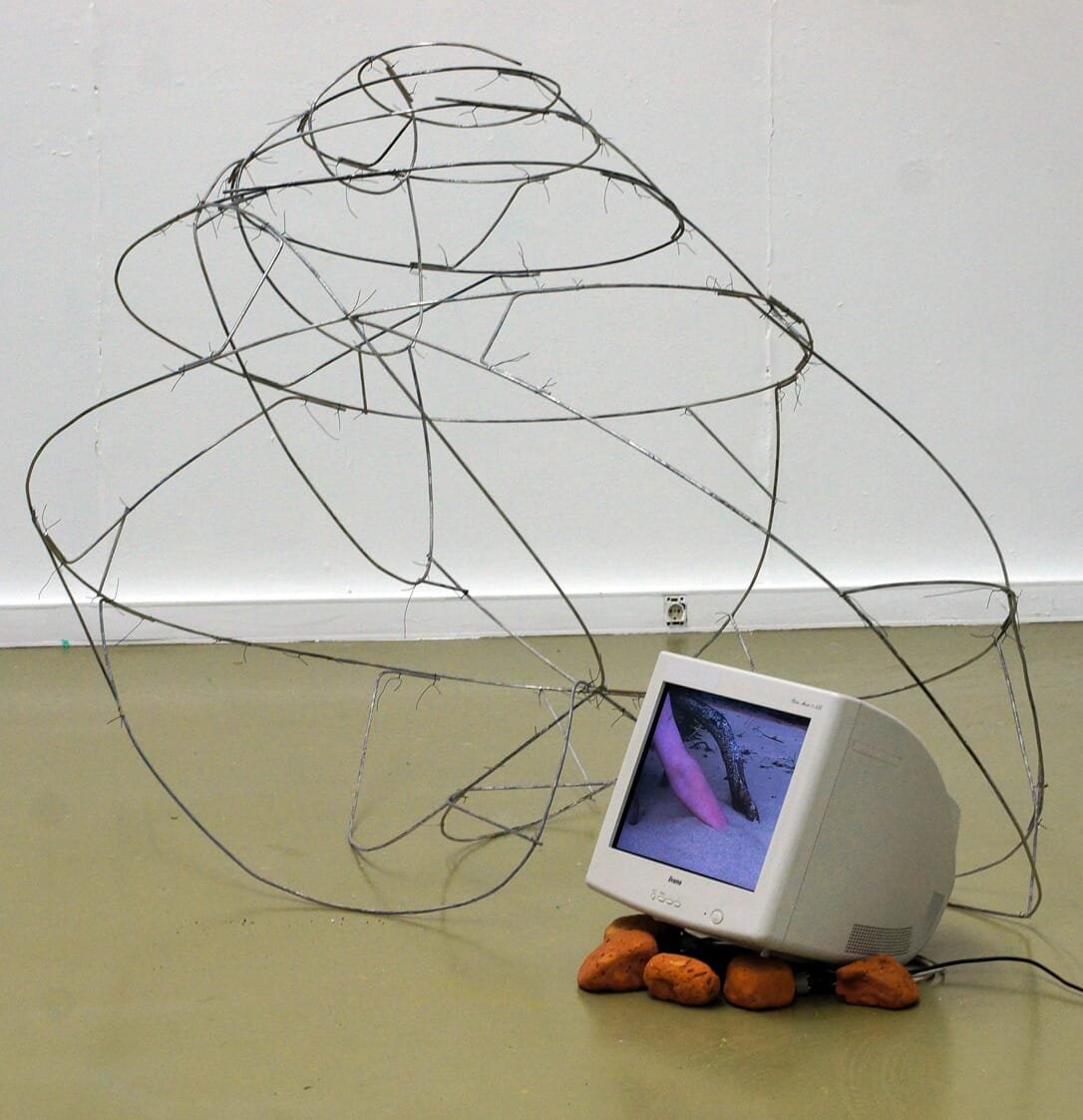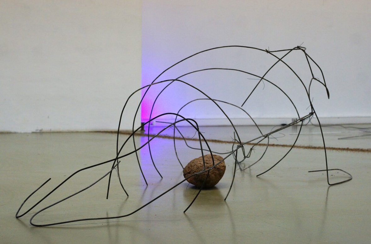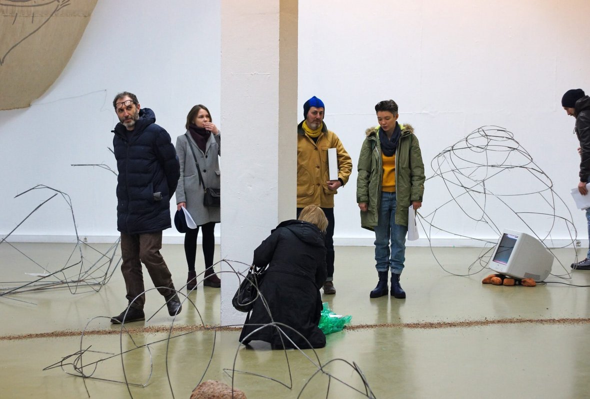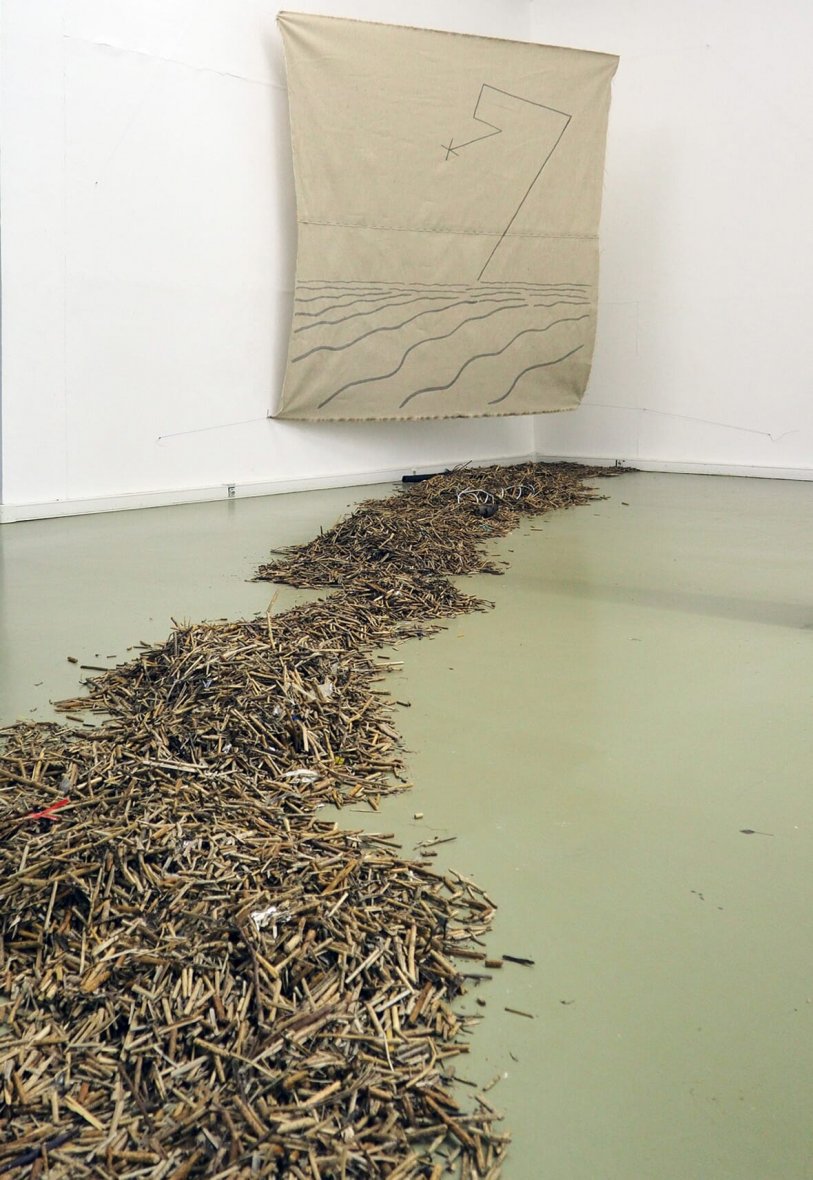 В «Модели природы, модели Гёте»* были структуры и некая, пусть гётеанская, но терминология. Теперь мышление в терминах и схемах сменилось логикой сетей. Точно также как структуры из тростника сменились неровно лежащим камышом. Художник — лишь часть сети с множеством различных акторов: сопротивлением металла, строением собственного тела, первоначальной формой того, что необходимо согнуть. Такое мышление предполагает определенный тип художественной субъектности: художник больше не властитель материала, способный творить с ним все, что угодно, а скорее часть мира, в котором есть как живое, так и не живое, и волю всех необходимо учитывать.