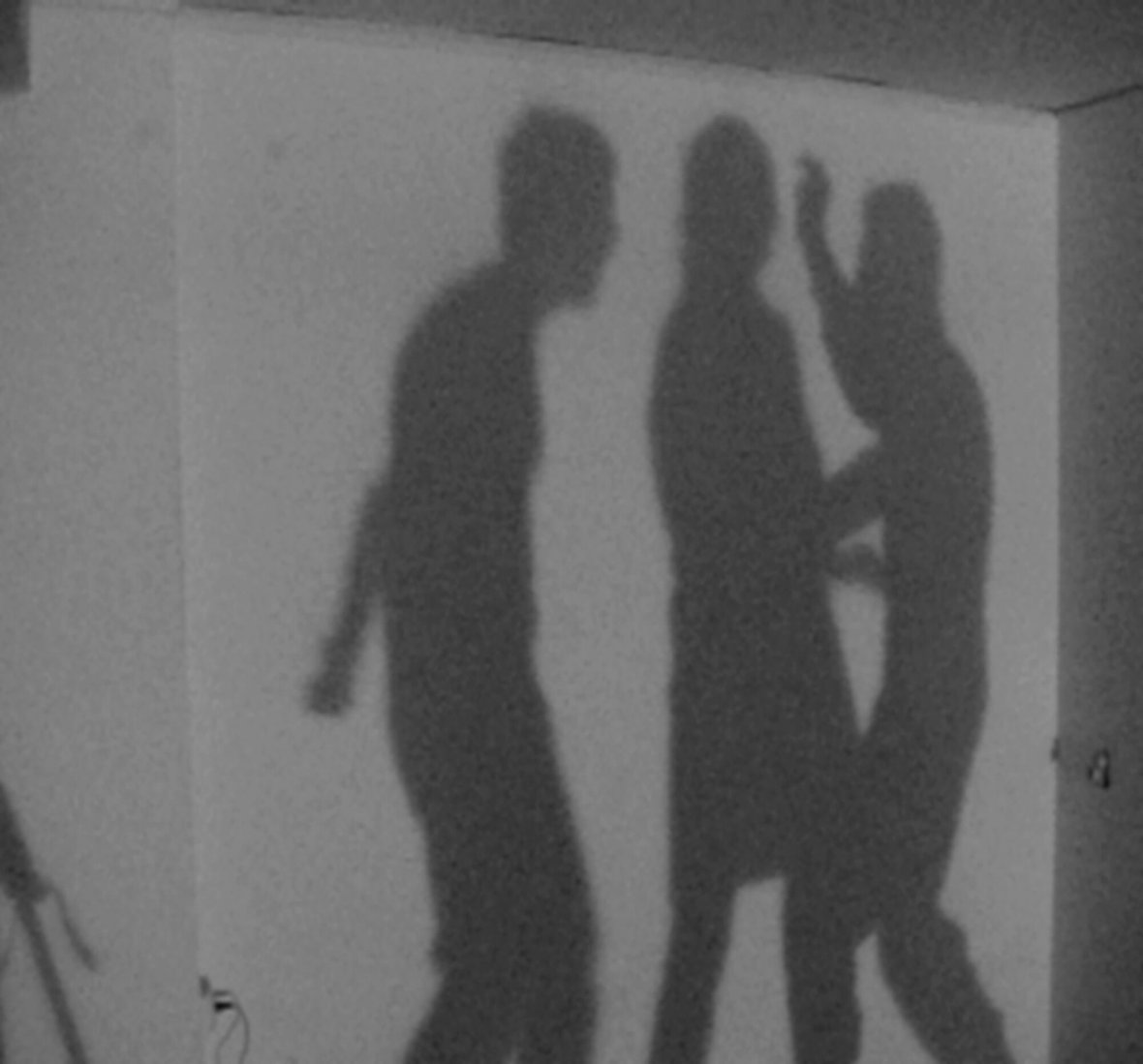 Все это дублируется на стенах. Это не зеркальное подобие, а именно тень – двухмерный, графический эквивалент. Зритель в этой модели лишается своей независимости. Он оказывается зажатым между танцующими силуэтами на экранах и источниками света, «вынужден» сам отбрасывать тень. Он продолжает воспринимать художественный акт, параллельно являясь частью произведения.