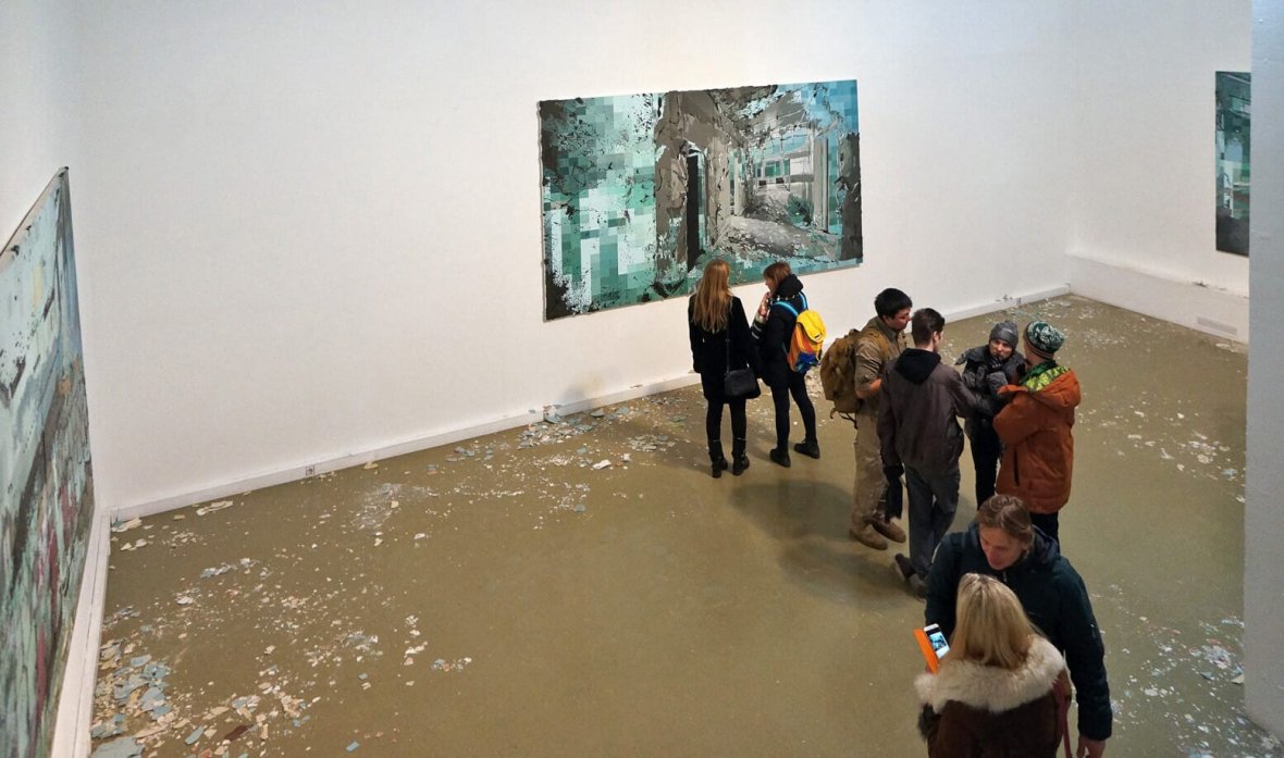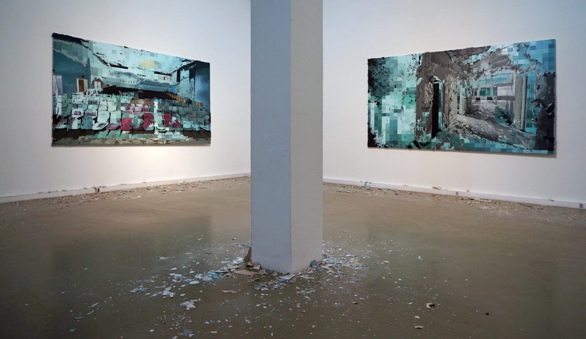 Мастерская художников расположена в бывшем доме культуры при текстильном комбинате. Здание не функционирует и находится в полуразрушенном состоянии. В зрительном зале ДК сиденья усеяны коконами моли, а коридоры c осыпающимися стенами напоминают кадры из фильмов Тарковского. Материальные объекты времен СССР вытесняются их цифровыми образами, которые уже не складываются в единое целое. Более точный запрос не возможен. Сервер выдает ошибку. Там, где технологии дают сбой, мастерство живописи остается. Вместо виртуального остается рукотворное, но в ином качестве. Традиционная картина здесь - симулякр, аналоговое изображение цифровой копии, с её шумами и искажениями. Живопись заимствует приемы баннерной рекламы, которая своим масштабом погружает зрителя в обрывки ветхого советского прошлого. С каждым новым витком времени цельная картина мира дробится и распадается. Возможна ли она сейчас?
