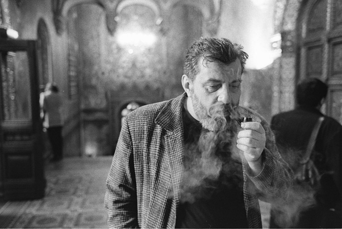 Мухин, без преувеличения, гениальный фотограф, и снятые им труженики современного искусства выглядят в его версии романтическими героями или, как минимум, нормальными людьми. Он не то, чтобы льстит своим героям. Он просто-напросто оставляет им человеческое достоинство в то время, как главным трендом репортажной фотографии на вернисажах является ловля особо эмоциональных моментов, когда персонажи напоминают толпу хулителей Христа на картине Босха. Этот тренд объясним: если эмоции не кипят на стенах и пьедесталах, надо искать их в гуще зачастую смешных или всего лишь пьяных посетителей. Мухин, наоборот, ищет на лицах выражение мечтательной задумчивости, спокойную статику уверенных в себе и будущем индивидов, занимающихся интеллектуальной деятельностью. В конце концов "Сообщники" о том, что искусство делается людьми, даже если оно постоянно сомневается в том, что же это такое – быть человеком.