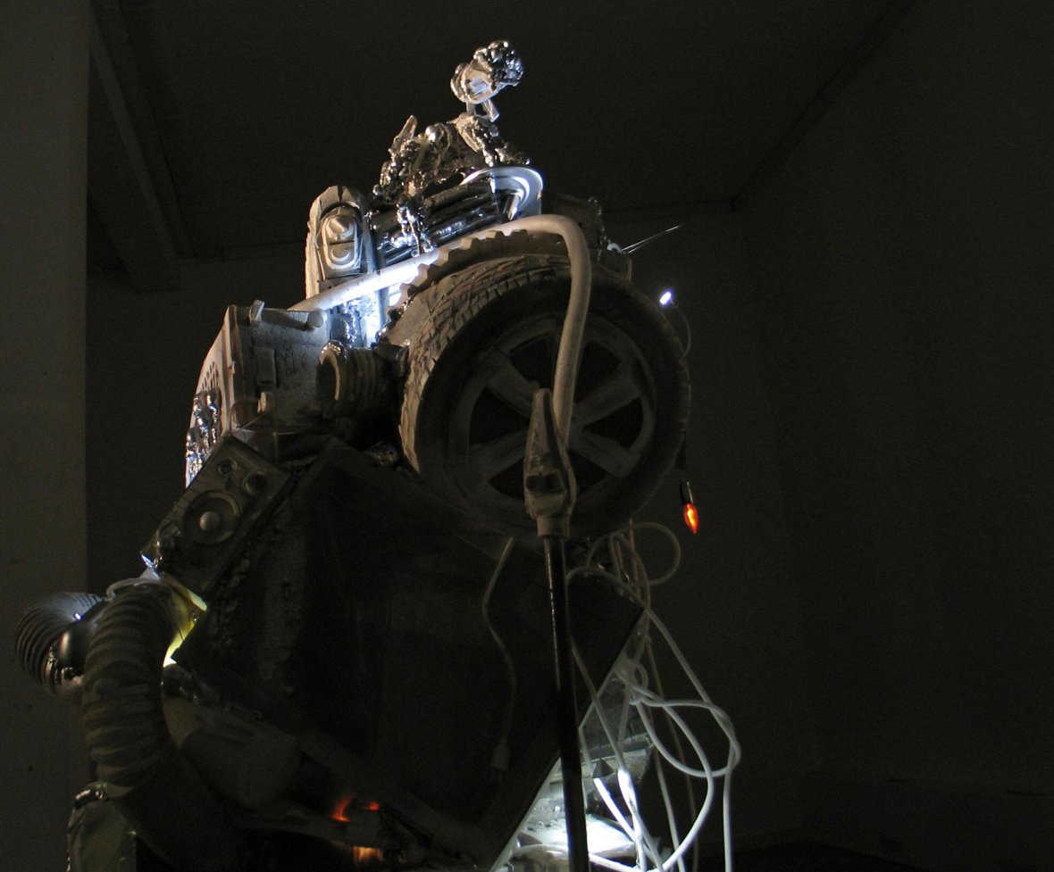 Новая работа Шеховцова – это памятник индустриальной катастрофе. Гору мусора из бытовой техники, электроники и автодеталей венчает робопес. Пылесосы, фены, холодильники, шины, плазменные панели, компьютеры – эти привычные элементы консумеристского рая – едва не подменили цель и смысл жизни «цивилизованного» человечества. Но вот грянул кризис и в его контексте проект Шеховцова весьма походит на похороны общества потребления. Впрочем, помойка всегда была одним из важнейших сюжетов в отечественном искусстве, знаком подлинной, разительно отличающейся от парадного фасада жизни. У Шеховцова свалка многослойна и на уровне художественного материала: бросовый поролон имитирует весь мусор современной цивилизации.