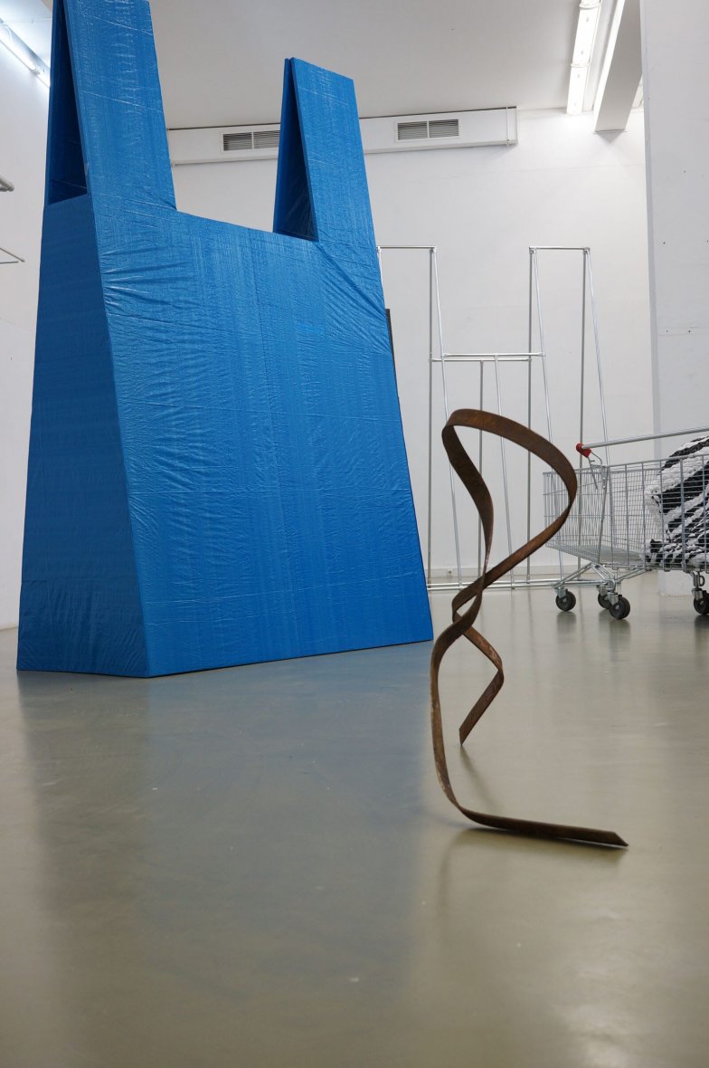 Пластиковый пакет, тележка из супермаркета — это массовые и безликие, но все же ключевые элементы приватной логистики потребителя. Если забыть о функциях этих предметов, то можно попробовать созерцать их как данности, эстетически, но от Повзнера не укрывается их глубинная природа. В каждой бытовой мелочи спит монумент социальным взаимодействиям, производству потребностей и желаний, персональным утопиям. Заметить это можно лишь на некотором расстоянии, с долей отстраненности, преодолевая гравитацию общепринятого.