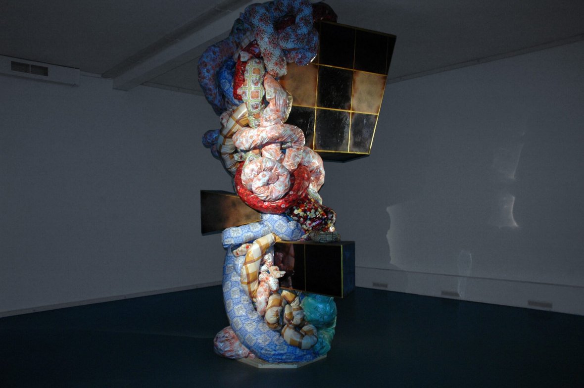 Как и всегда у Кориной – толчком к созданию инсталляции является абсолютно конкретное переживание, точнее смутное воспоминание об атмосфере раннеперестроечного времени: разлитой в воздухе агрессии, острого чувства опасности и удушья - состояния перед «взрывом», зачастую и выражающемся в форме локальных взрывов то тут, то там…, громкой идиотской музыки, несущейся из ларьков, мрачно затемненных окон домов и машин и т.д. Конечно, много было и веселого, но очевидное авторское - «я так вижу», точнее помню, точнее чувствую…