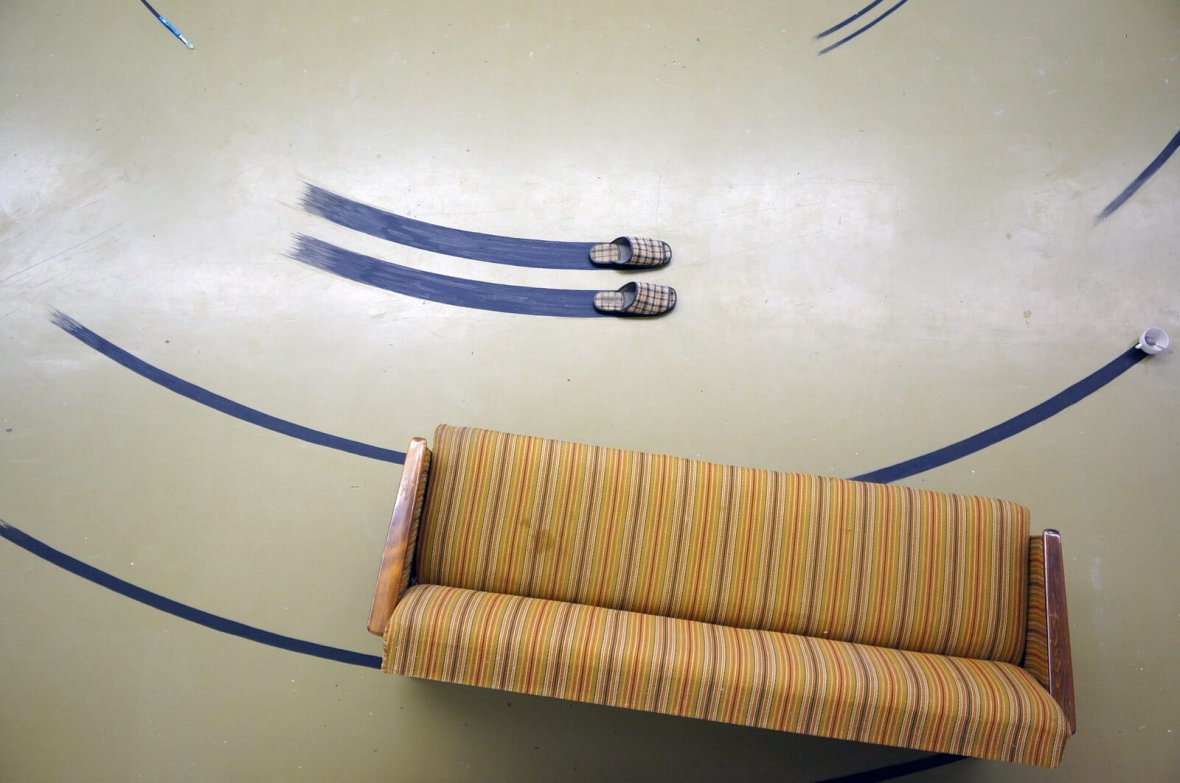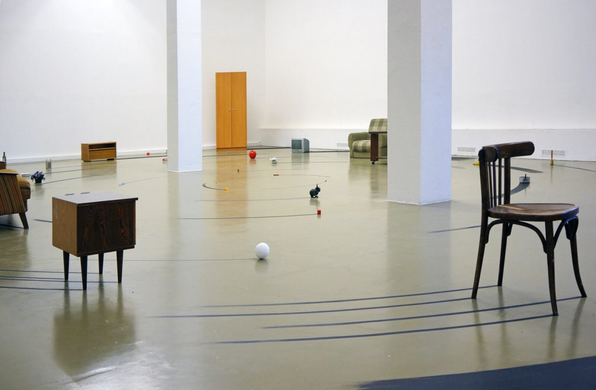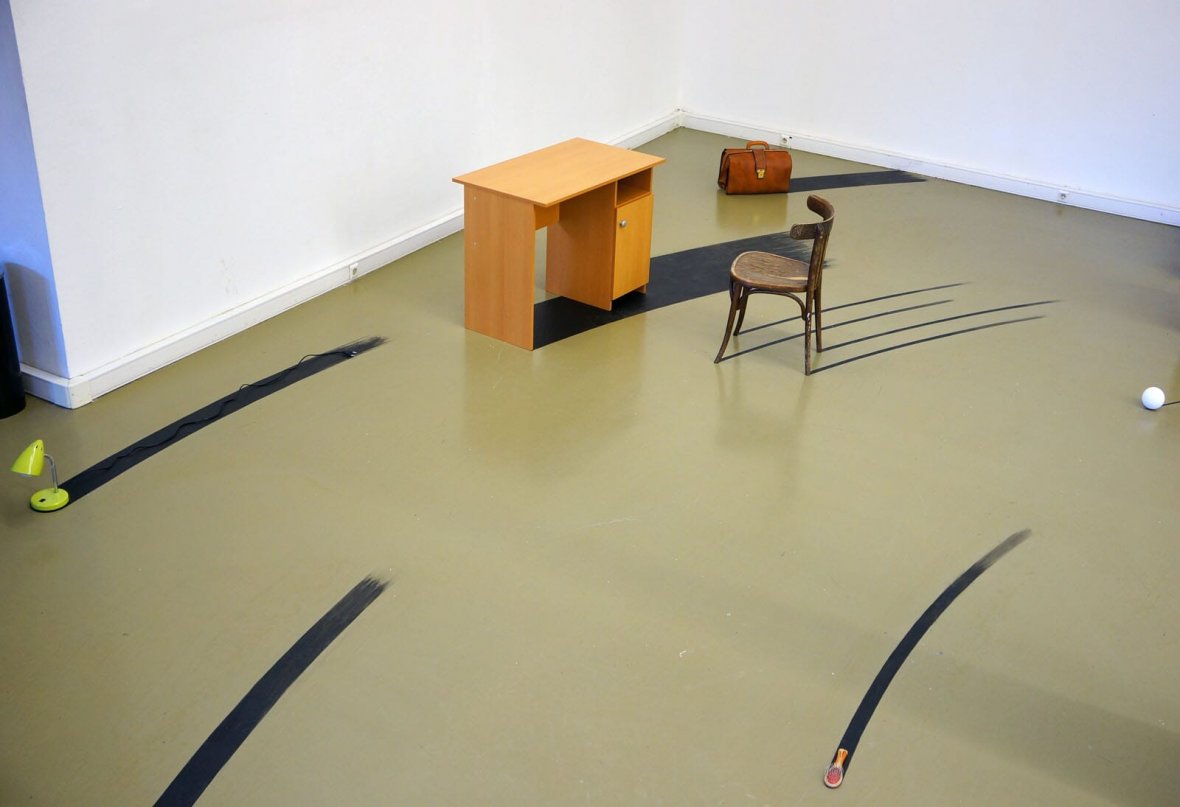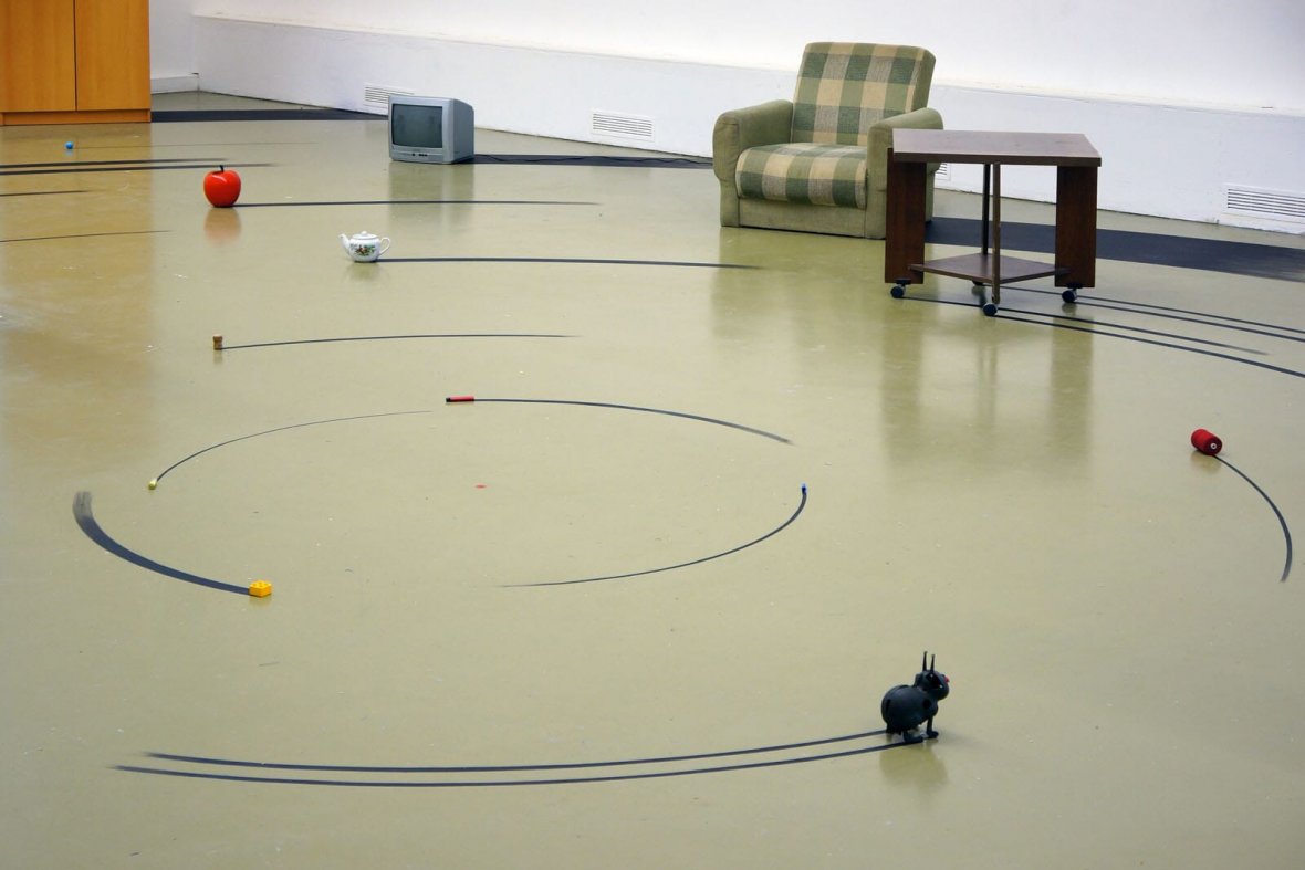 Как-то желая придумать идеальную скульптуру, которая взаимодействует с пространством, я понял, что точка и есть эта идеальная скульптура. Достаточно поставить точку в любом месте и назначить ее центральной точкой, пространство само начнет создаваться и организовываться вокруг, причем на любое расстояние. То есть точка это такой созидательный приказ, а появляющееся пространство вокруг - скульптура. Экспериментируя в мастерской с этим явлением, я нарисовал на полу точку и следы от предметов как будто бы они вращаются относительно этой точки. Что бы легче представить возникающее пространство я встал в центр этой точки и испытал необычные ощущения. Я понял, что эта точка, создающая вокруг пространство, есть внутри человека.