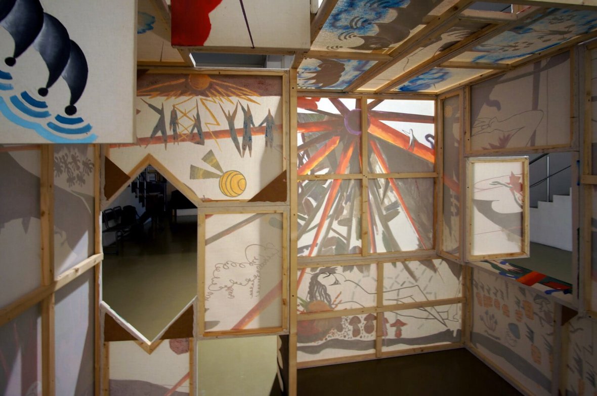 - Печь-дом — это большая фреска-трансформер, которую можно собирать в разной конфигурации, - объясняют художники. - Это отсылка к дому Мельникова, который, возможно, тоже был технокрестьянином и при проектировании вдохновлялся крестьянским бытом, а также совмещал это все с прогрессивными практиками.