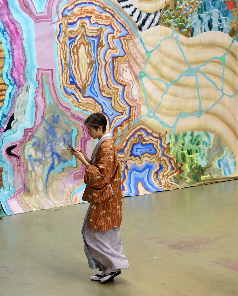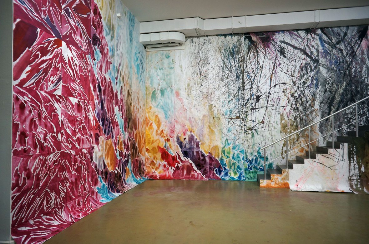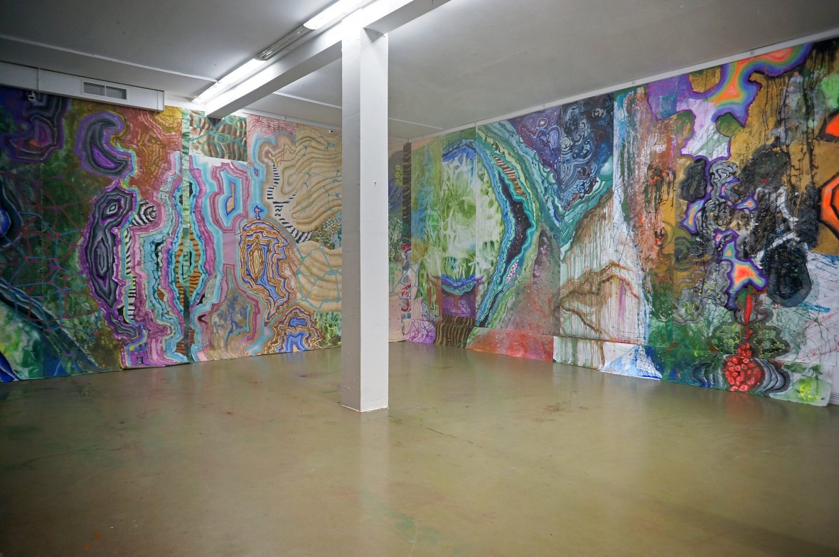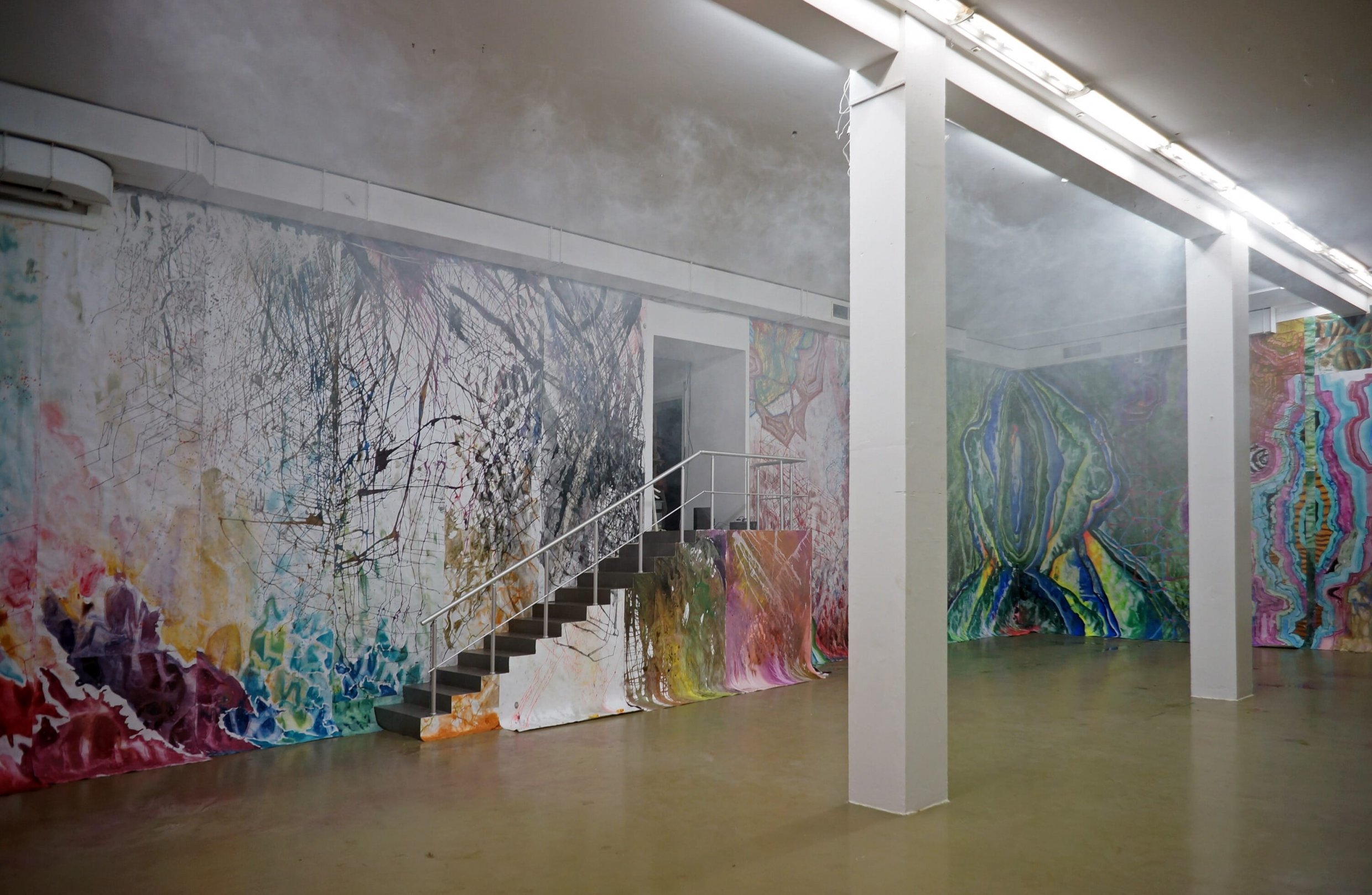 Требуется определенное усилие, чтобы не спутать такое воздержание от тенденциозности и дидактики с безразличием по отношению к зрителю. Здесь стоит опять таки обратиться к фигуре Ганса Касторпа: ему, не придающему особого значения собственному диагнозу, почему-то кажется важным, даже необходимым жить вместе с людьми, половина которых выздоравливает, а другая половина – умирает. И не просто жить рядом, но по мере сил оказывать им поддержку. Для Ирины Кориной и Светланы Шуваевой таким же предметом экзистенциальной заботы оказывается весь контекст художественной деятельности – весь круг так или иначе вовлеченных в нее людей, включая, конечно, и зрителей. Событие экспонирования – кульминационный момент работы «искусства как системы» – является неотъемлемой частью проекта в целом и, возможно, наиболее интересной его частью. Размышляя над выставкой с точки зрения ее сценографии и взаимодействия со зрителями, авторы, к примеру, предполагали, что гости галереи будут с удовольствием фотографироваться на фоне созданных ими огромных живописных панно. А те из них, кто уже предварительно знаком с творчеством участниц дуэта, вероятно, с интересом поломают голову над тем, какой из них принадлежит тот или иной фрагмент грандиозной росписи.